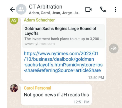 After a very successful year of judgements in their collective favour Adam Schachter sent this message to the ‘CT Arbitration’ WhatsApp chat group at the end of 2022: